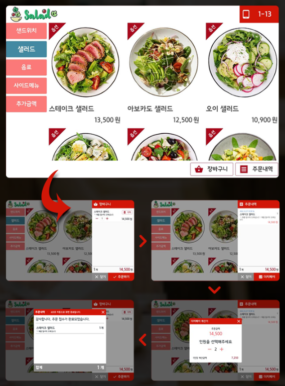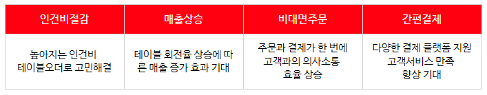 주문할때마다 직원을 불러야 되는 번거로움이 없고,직원은 주문을 받기 위한 동선감소와 주문을 잘못 받을 경우가