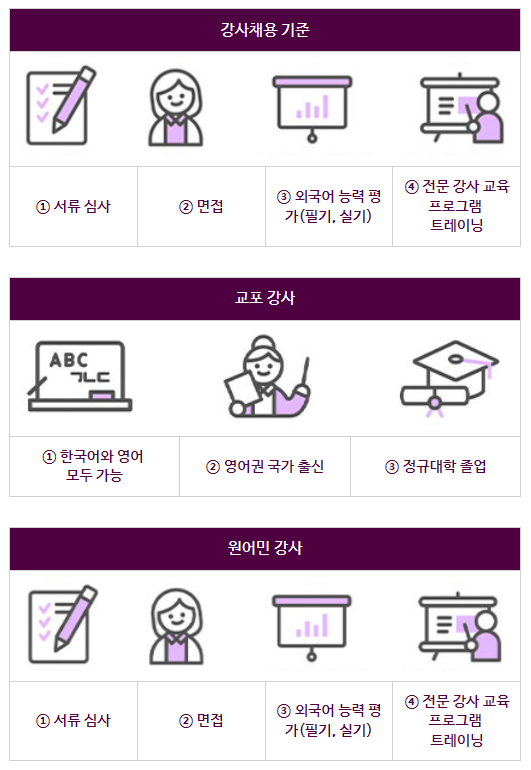 영어권 국가 출신의 교포와 원어민 강사진으로 구성