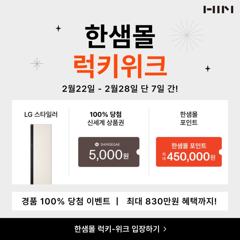 인테리어 전문관 한샘몰 럭키위크 이벤트