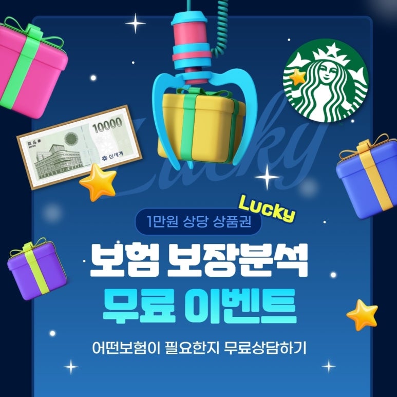 무료 상담 신청만 하면 경품이 와르르! 재테크 상담도 가능합니다. 상담만 완료하면 100% 경품지급! 백화점 상품권 or 스벅 기프티카드 무료로 보장분석 받고 경품 받아가세요!! 부산, 대구, 광주,