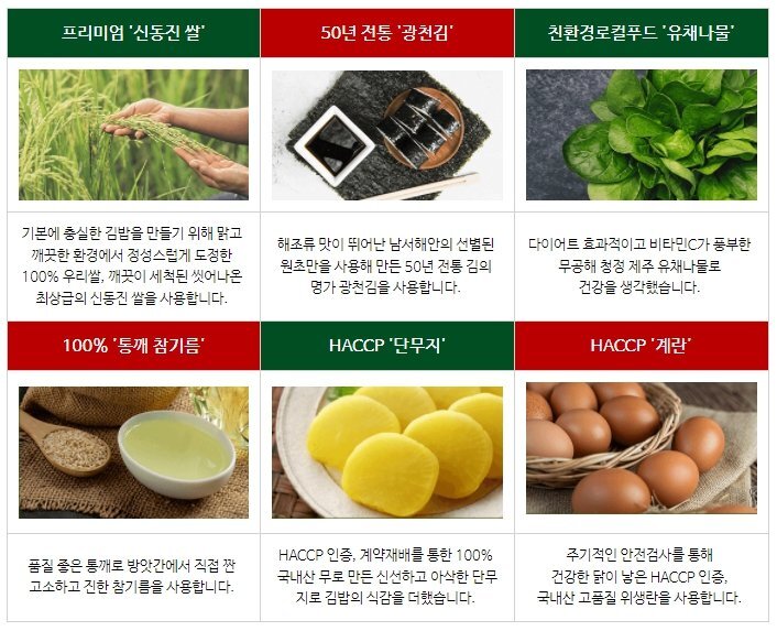건강한 원재료로 속이 꽉 차도록 알차게 만든 비교불가 가성비 김밥
