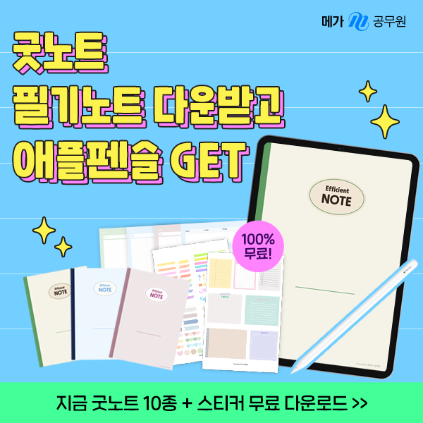 메가공무원 굿노트 속지 10종 & 스티커 부록 4종 무료 배포 중, 이벤트 참여 시 애플펜슬도 드려요!