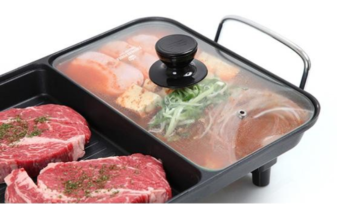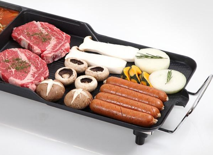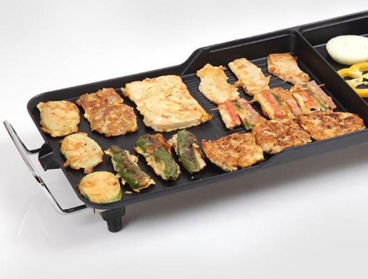 넓은 사이즈의 3in1 멀티 그릴은 여러가지 음식들을