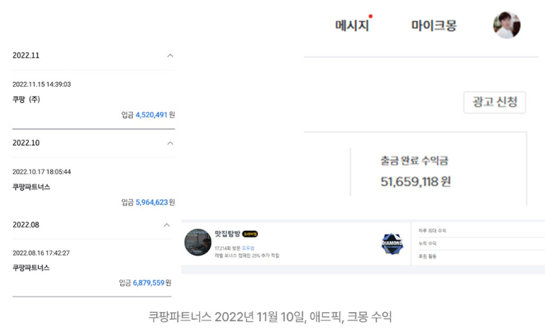 쿠팡 파트너스, 애드픽, 크몽 수익 인증 모음