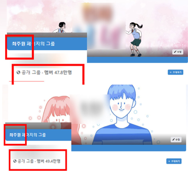 (페이스북 그룹 '국내 1위' 학생들 대나무숲, 훈녀훈남, 인싸남녀 등등)