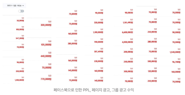 각종 PPL광고 & 페이지 광고 & 그룹 광고 수익