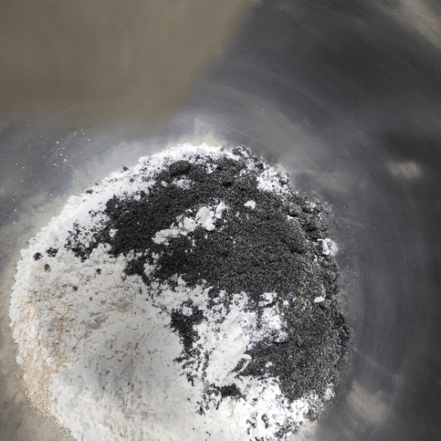 흑미쌀가루로 반죽으로 하여 흑미의 구수함을 더했습니다.