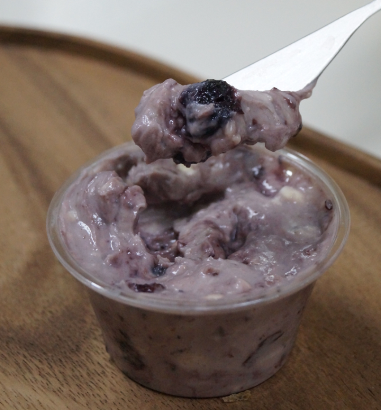 블루베리를 그대로 반죽에 넣어 블루베리의 향을 느낄 수 있으며