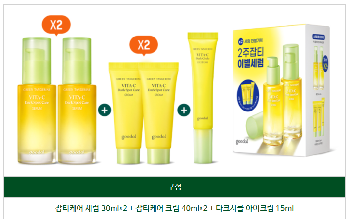 청귤 비타C 잡티케어 세럼 더블기획 (세럼30ml*2+크림40ml*2+아이크림15ml)