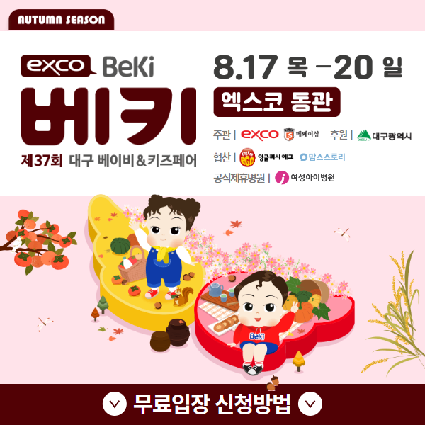 엄마! 아빠! 더이상 고민하지 마세요. 대구/경북 최대 규모 대구 베이비&키즈페어가 있으니까요! 8월 베키 왜 가야하나요? 하나, 엑스코에서 열리는 "유일한" 베이비페어 둘, 영남권 최다 브랜드!