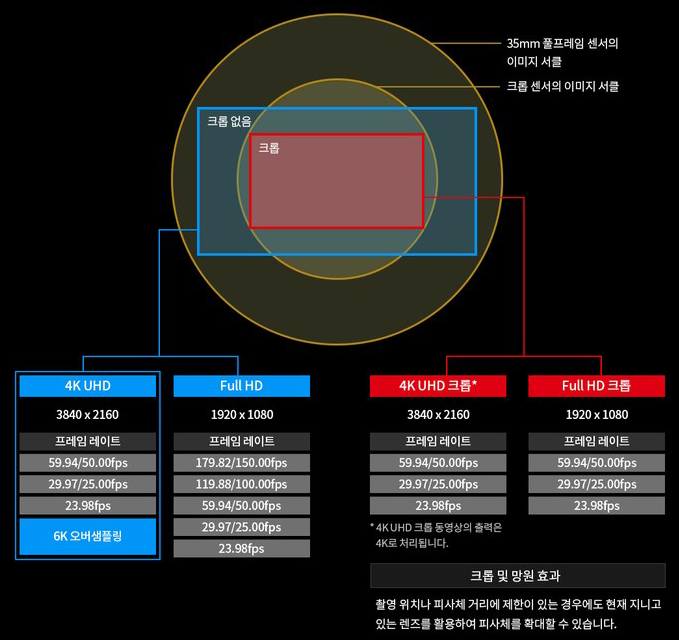 6K 오버샘플링 프로세싱으로, 크롭 없는 4K 60p촬영 가능