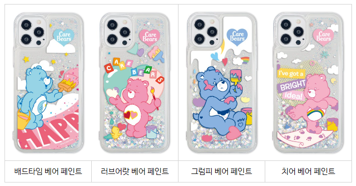 케어베어 페인트 글리터 휴대폰 케이스